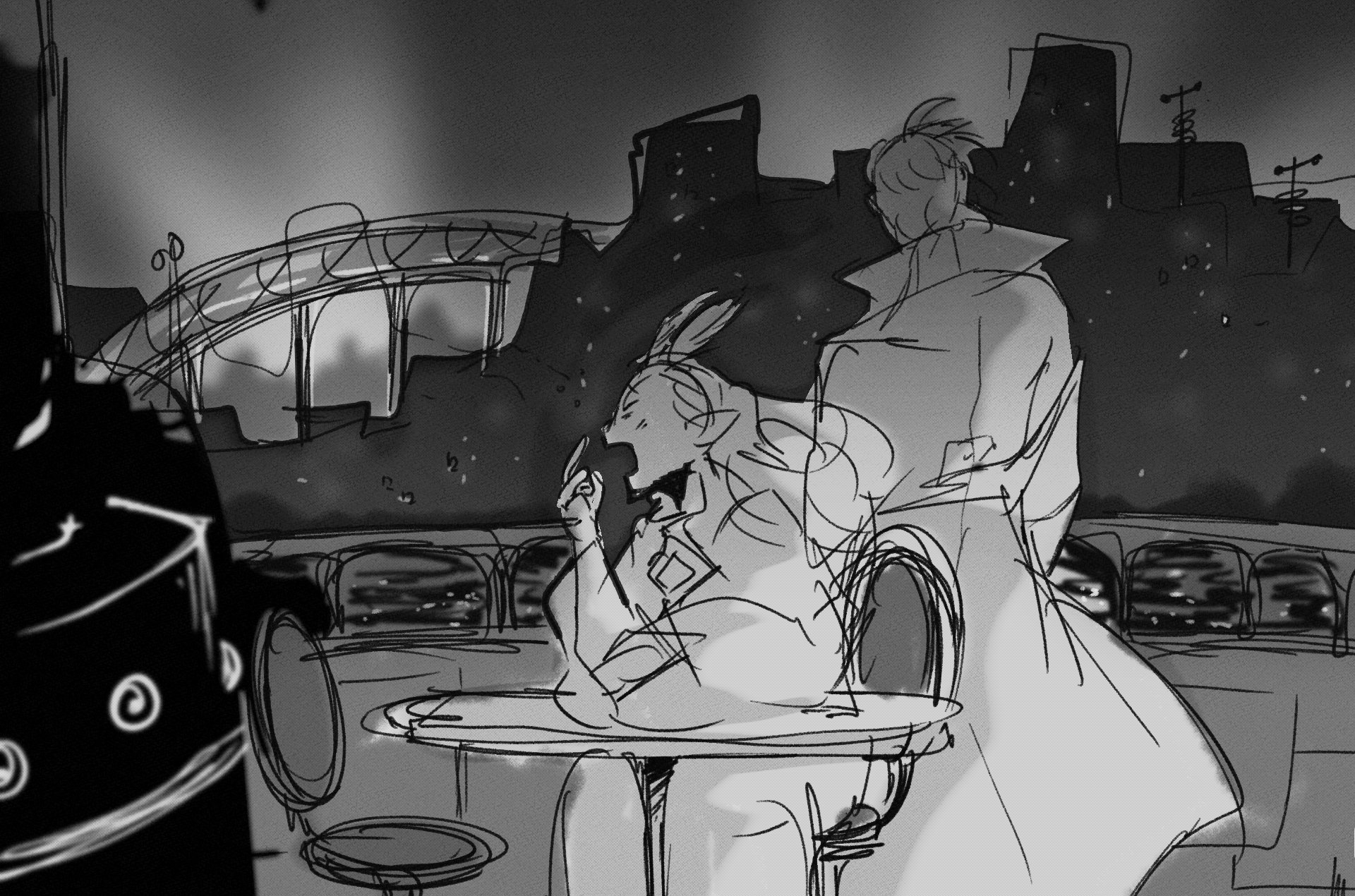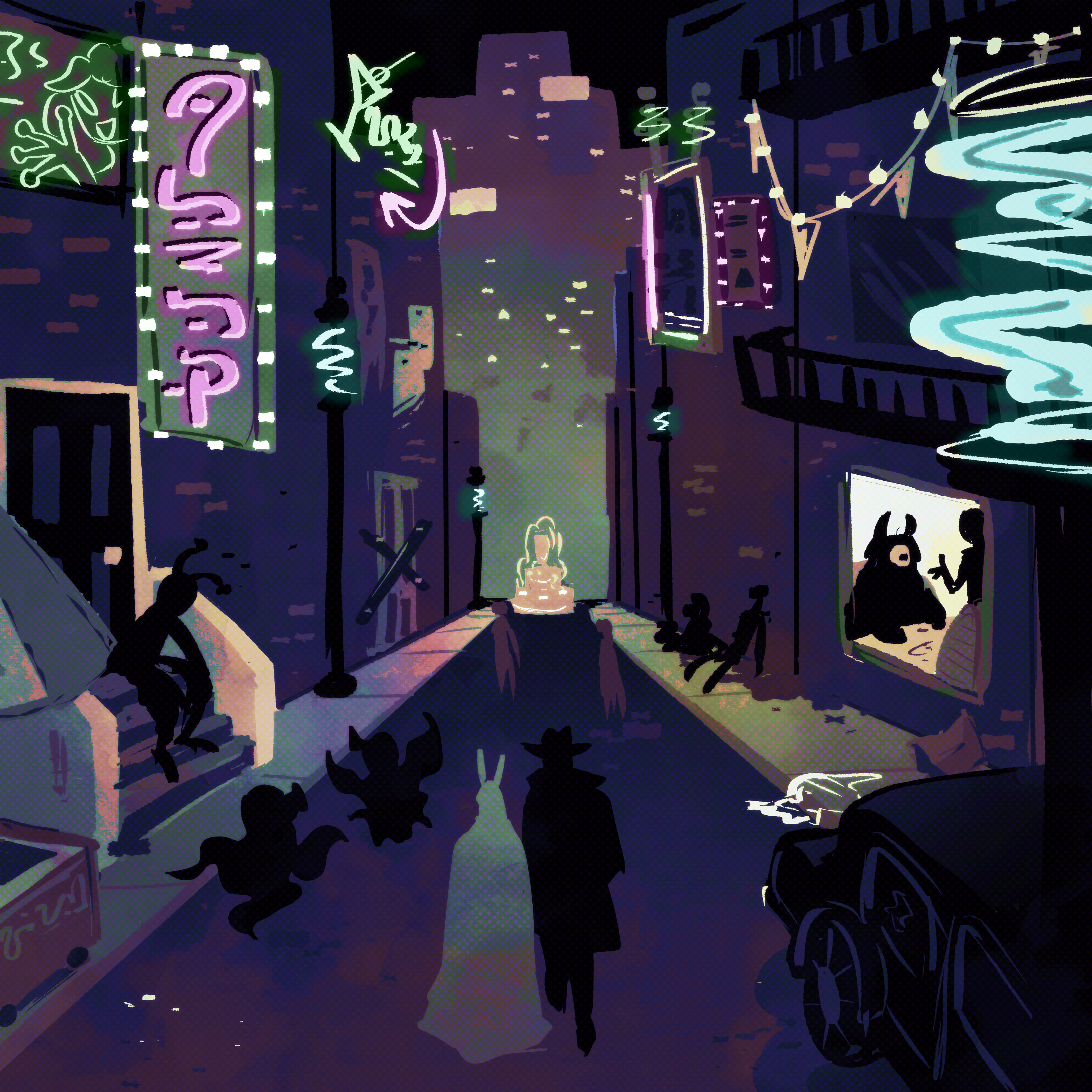 Some concept art from my original feature film pitch. The film, taking place at the edge of the universe, follows a mediocre, middle-aged private eye who is driven to madness by the mysterious death of his fiancée.